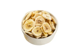 Banana desidratada é um lanche saudável e saboroso feito ao remover a umidade de bananas maduras.